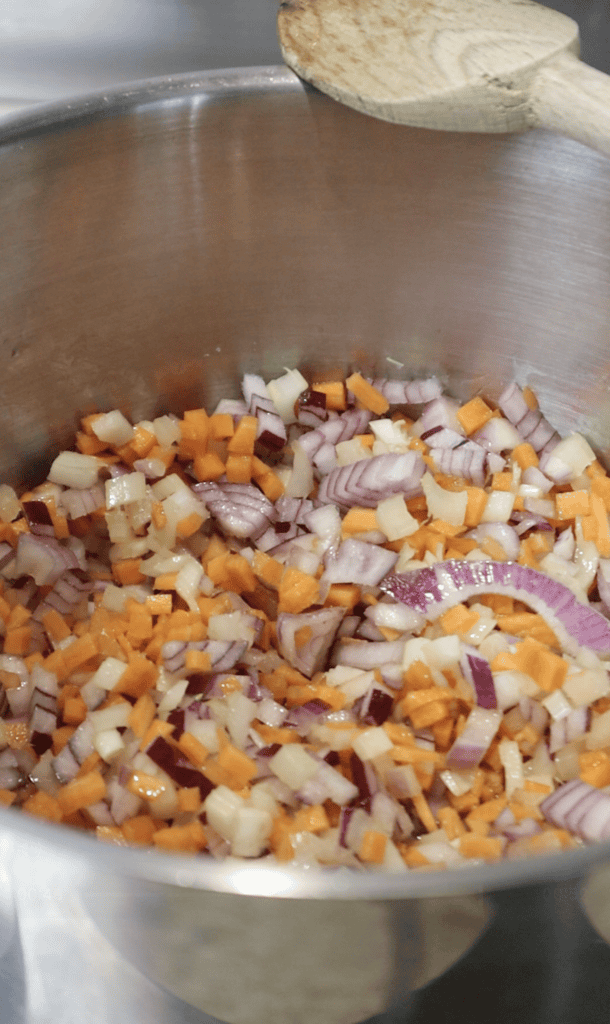- Heat olive oil in a medium pot over medium heat. Add celery, carrot, onion. Cook 5-7 minutes until softened and fragrant. This slow sauté builds the flavor foundation of your polenta bean soup.