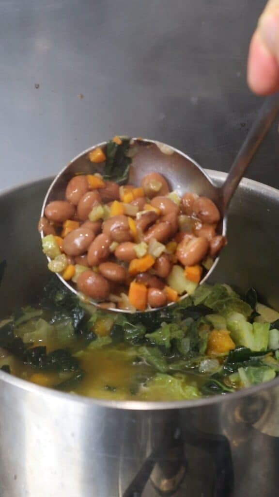 Scoop about 1.5 ladles of the bean-soffritto mixture and blend (or puree) with some water until smooth and creamy.