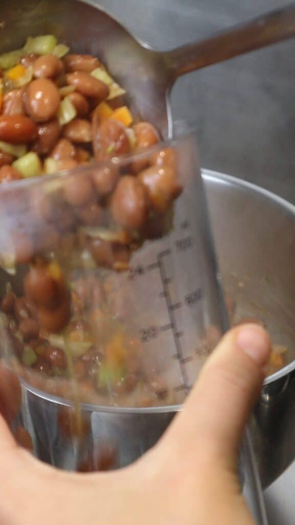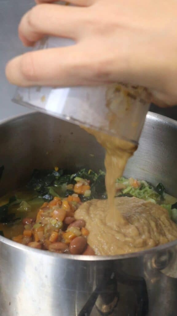 - Scoop about 1.5 ladles of the bean-soffritto mixture and blend with some water until smooth and creamy.