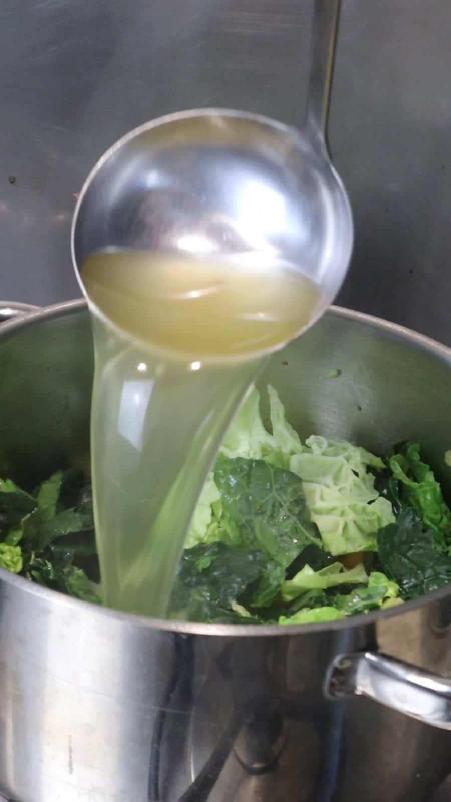 Combine greens and broth